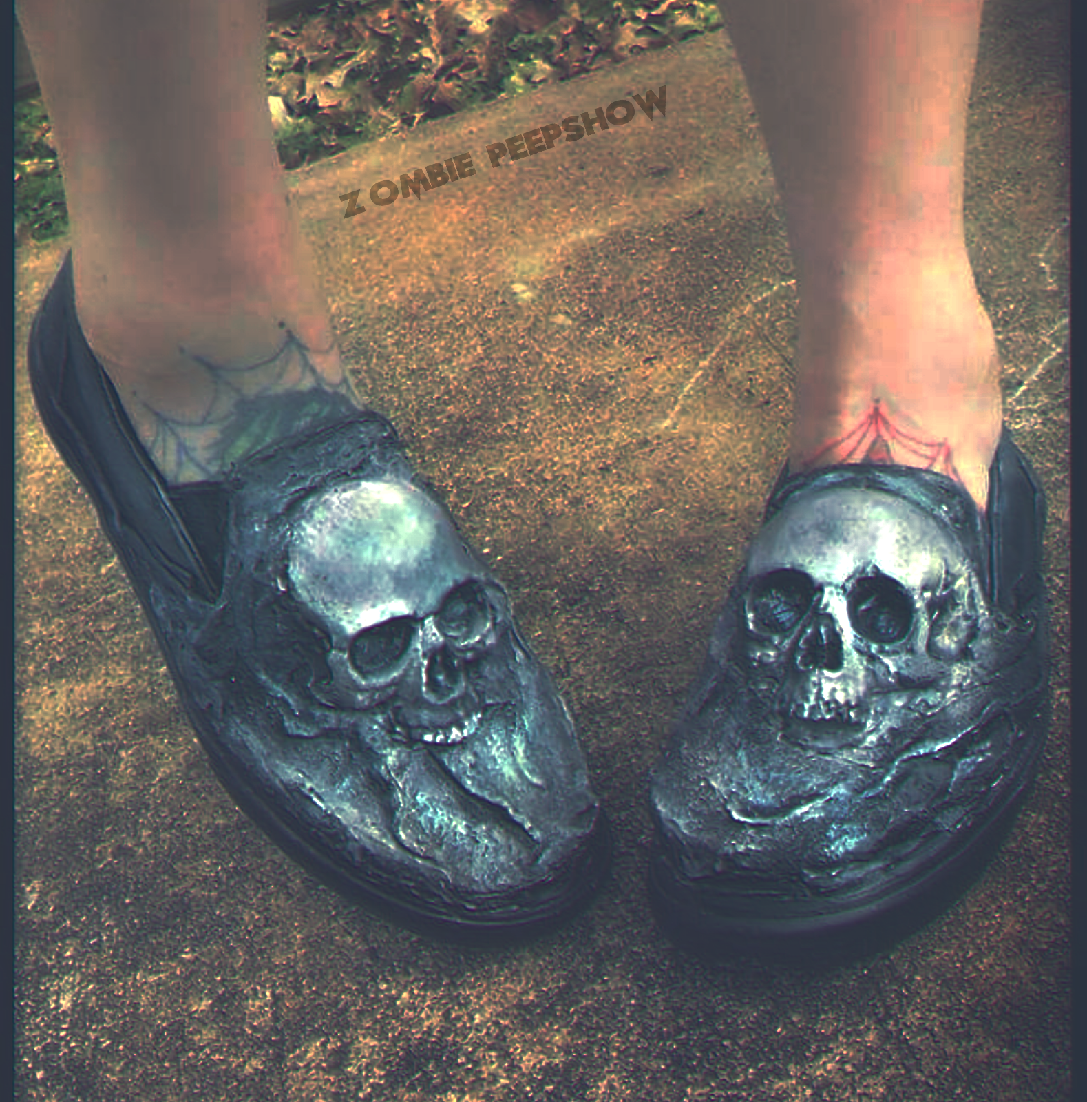 Crypt Flats feature sculpted skulls, latex texture, and grungy paint. They are slip on and super comfy!