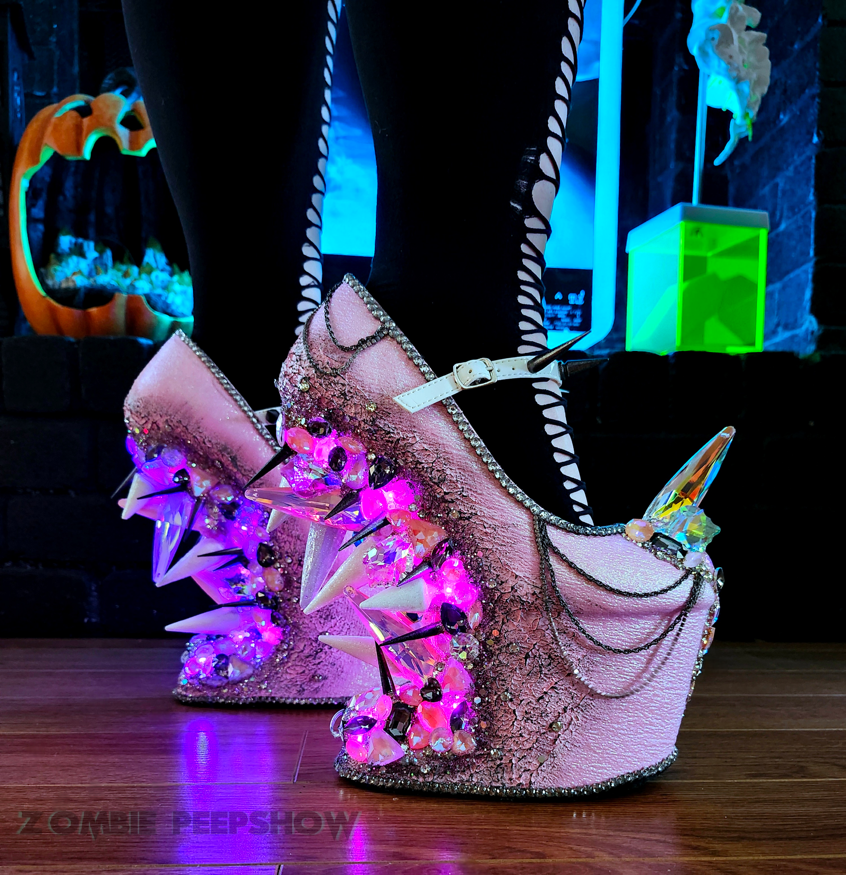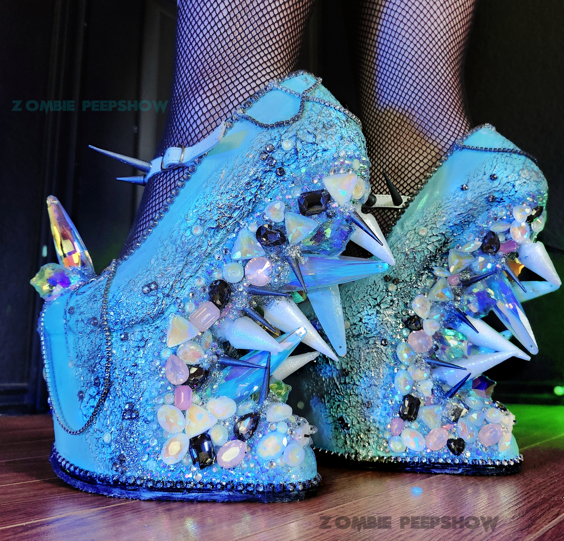 Jawbreaker Wedges feature iridescent pastel base, draped chain and texture, assorted crystal and prisms.